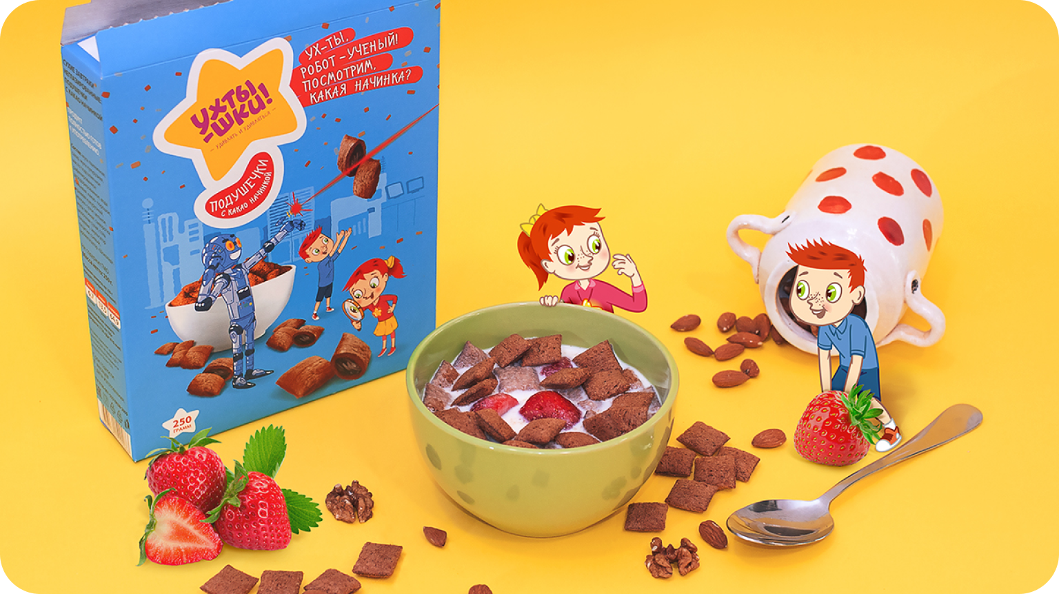 Вы разработаете дизайн упаковки для линейки детских товаров «Ухтышка». Авторы лучших проектов получат возможность сотрудничать с заказчиком дальше — а результаты их работы могут появиться в супермаркетах по всей стране.